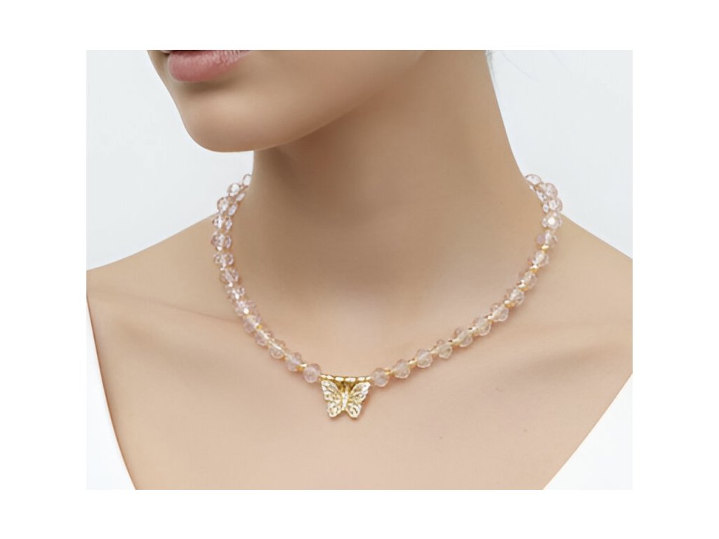 Náhrdelník typu choker s motýlem se zirkony, zlaceným 18-ti karátovým zlatem. Délka náhrdelníku je 39 cm + 5 cm prodlužovací řetízek. Velikost motýla je 1,5 x 1 cm.