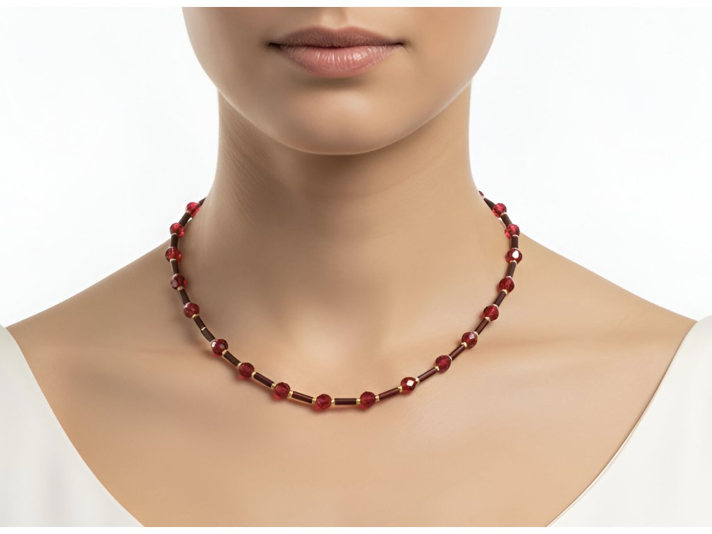 Minimalistický náhrdelník v tmavě růžové barvě pivoněk
